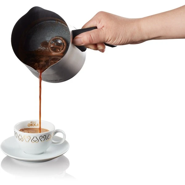 Die Mokkamaschine Okka Rich Spin M von Arzum ermöglicht es den türkischen Kaffee oder Milchkaffee per Tastendruck vollautomatisch so zuzubereiten wie es sich gehört. Die vier beleuchteten Bedientasten bieten dabei maximale Benutzerfreundlichkeit. Die Okka Rich Spin M verfügt über vier Brühprogramme: Klassisch, Stark, „Glut“ und Milch. Der Kaffee oder Milchkaffee wird hier nur bei schwacher Hitze gebrüht und erreicht dabei eine schaumige Konsistenz ohne Überzulaufen. Die Edelstahlkanne der Okka Rich Spin M fasst bis zu 5 Tassen (4 Tassen bei Benutzung des Milchprogramms) und lässt sich nach Verwendung bequem und einfach reinigen.Art.-Nr.: 1835856