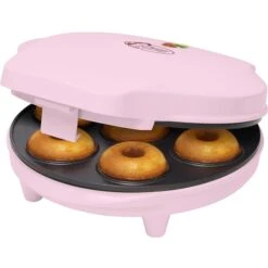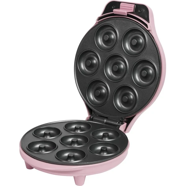 Der Donutmaker ADM218SDP von Bestron backt 7 leckere Donuts im Handumdrehen. Die Kontrollleuchte informiert darüber ob das Gerät angeschlossen und ob es betriebsbereit ist. Der Donutmaker ist innerhalb weniger Minuten einsatzbereit und die Bedienung ist dank der automatischen Temperaturregelung und der Backampel ein Kinderspiel. Die Antihaftbeschichtung sorgt für leichtes Entnehmen der Donuts und für eine einfache Reinigung.
