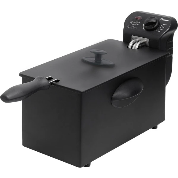Die Bestron Fritteuse AF357B ist eine besonders praktische Fritteuse: Der Deckel ist abnehmbar. Die Temperatur des Frittierfettes lässt sich außen am über einen Drehregler einstellen. Die Fritteuse AF357B eignet sich bestens für Pommes Frites, Snacks, Fisch und vieles mehr. Sicheres Heben und Senken des Fritierkorbes ist durch den wärmeisolierten Griff möglich. Die Fritteuse AF357B ist leicht zu reinigen und ein austauschbarer Fettfilter sorgt für Hygiene des Gerätes.Art.-Nr.: 1432170