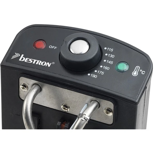 Die Bestron Fritteuse AF370CO ist eine besonders praktische Fritteuse im stilvollen Kupfer-Design: Der Deckel ist herausnehmbar und mit einem Sichtfenster, auswechselbarem Fettfilter sowie Spritzschutz ausgestattet. Die Temperatur des Frittierfettes lässt sich außen am über einen Drehregler bis zu 190°C einstellen. Die Fritteuse AF370CO eignet sich bestens für Pommes Frites, Snacks, Fisch und vieles mehr. Sicheres Heben und Senken des Fritierkorbes ist durch den wärmeisolierten Griff möglich. Die Fritteuse AF370CO ist durch den emailierten, herausnehmbaren 3,5 l Behälter leicht zu reinigen.Art.-Nr.: 1576237