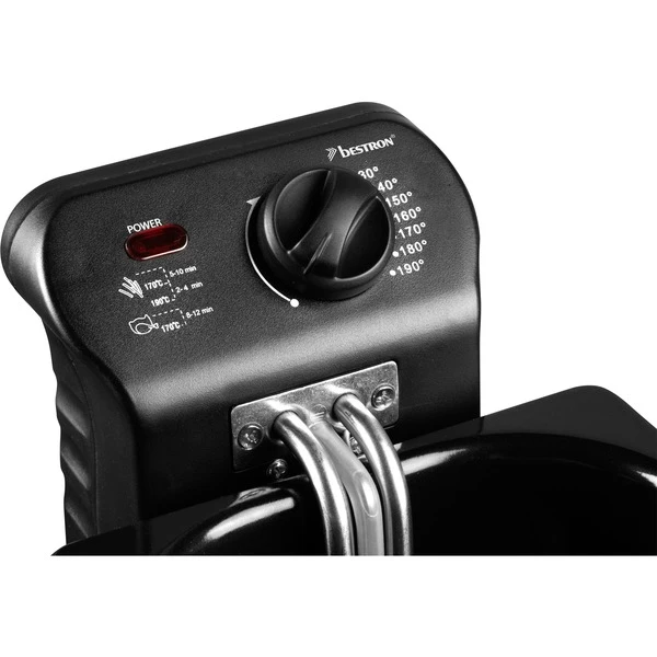 Die Bestron Fritteuse AF357A eignet sich ideal für ca. 1 kg Pommes Frites, Snacks, Fleisch, Fisch etc. Die Temperatur des Frittierfettes lässt sich über einen Drehregler mit Kontrollleuchte bis zu 190°C einstellen. Die Kaltzonen-Technologie sorgt für eine längere Haltbarkeit des Öls. Sicheres Heben und Senken des Fritierkorbes ist durch den wärmeisolierten Griff möglich. Die Fritteuse AF357A ist durch den emaillierten, herausnehmbaren 3,5 l Behälter leicht zu reinigen. Der Deckel ist abnehmbar.Art.-Nr.: 1820339