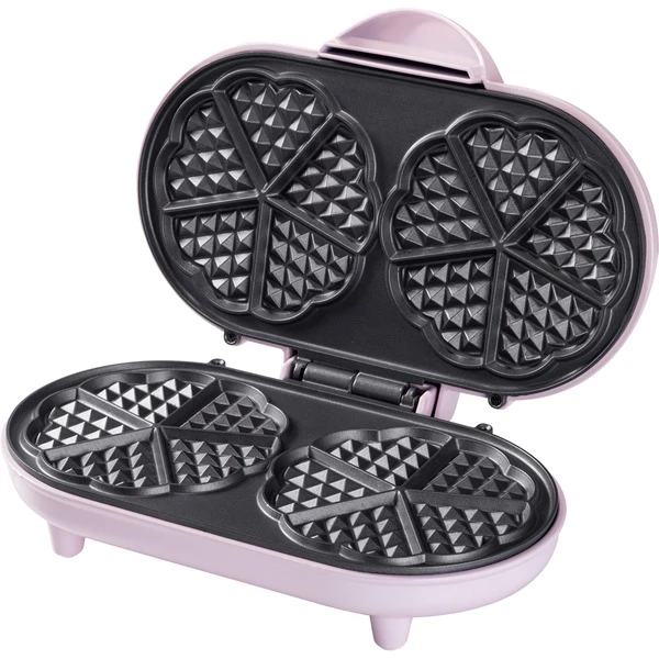 Mit dem Doppel-Waffeleisen ADWM1000P von Bestron lassen sich zwei fünfteilige herzförmige Waffeln gleichzeitig zaubern. Mit der automatischen Temperaturregelung und der praktischen Kontrollleuchte für “gebrauchsfertig” und “An/Aus” sind viele Waffel-Variationen möglich. Das Gehäuse in zartem Rosa ist hitzebeständig und für einen sicheren Stand sorgen die Antirutschfüße. Die Reinigung ist dank der Antihaftbeschichtung ein Kinderspiel.Art.-Nr.: 1742125