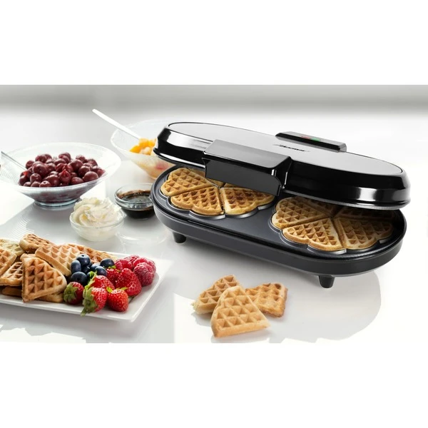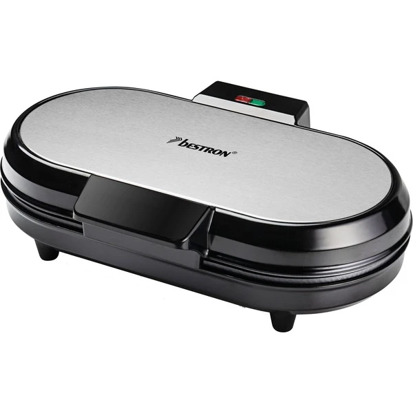 Mit dem Doppelwaffeleisen ADWM730S von Bestron lassen sich zwei fünfteilige herzförmige Waffeln gleichzeitig zaubern. Das Gehäuse in hochwertigem Edelstahl-Design mit wärmeisolierendem Handgriff ist hitzebeständig und die Antirutschfüße sorgen für einen sicheren Gebrauch. Das Waffeleisen ist innerhalb weniger Minuten einsatzbereit und die Bedienung ist dank der automatischen Temperaturregelung und der Bereitschaftsanzeige ein Kinderspiel. Die Antihaftbeschichtung sorgt für leichtes Entnehmen der Waffeln sowie für eine einfache Reinigung.Art.-Nr.: 1820351
