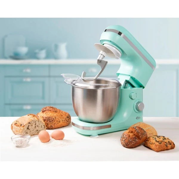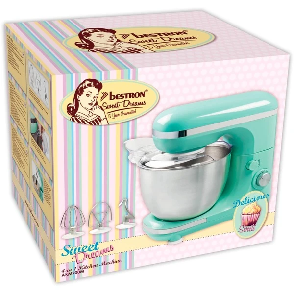 Die Bestron AKM900M ist eine leistungsstarke 4- in 1-Küchen-/Knetmaschine mit einer Leistung von maximal 1.000 Watt. Sie bietet stufenlose Geschwindigkeit zum Kneten, Rühren, Schlagen und Mischen für jeden Zweck. Die planetarische Bewegung sorgt für ein optimales Ergebnis. Die 5 Liter Edelstahl Rührschüssel eignet sich für 500g Brotteig oder 2,5L Rührteig. Der Spritzschutzdeckel besitzt eine praktische Einfüllöffnung zum Hinzufügen von Zutaten während des Gebrauchs.