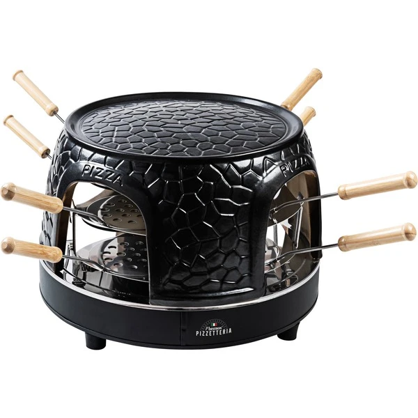 Der elektrische Pizzaofen Pizzetteria APD800Z bietet gemeinsamen Partyspaß am Tisch. Bis zu max. 8 Personen können zusammen Mini-Pizzen, kleine Flammkuchen oder Quiches bis Ø 10 cm genießen. Die Keramikkuppel sorgt für eine gleichbleibende Wärmeverteilung und ist auch geeignet zum Auflegen und Vorwärmen des Pizzateigs. Die Keramikkuppel ist abnehmbar und erleichtert die Reinigung. Im Lieferumfang sind 6 x wärmeisolierte Backspatel und 1 x Teigausstecher.