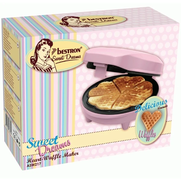 Mit dem Waffeleisen ASW217 von Bestron lassen sich herrliche Herzwaffeln zaubern. Mit der automatischen Temperaturregelung und der praktischen Kontrollleuchte für “gebrauchsfertig” und “An/Aus” sind viele Waffel-Variationen möglich. Das Gehäuse in zartem Rosa ist wärmeisoliert. Für Sicherheit sorgen die Antirutschfüße. Die Reinigung ist dank der Antihaftbeschichtung ein Kinderspiel. Art.-Nr.: 1435858