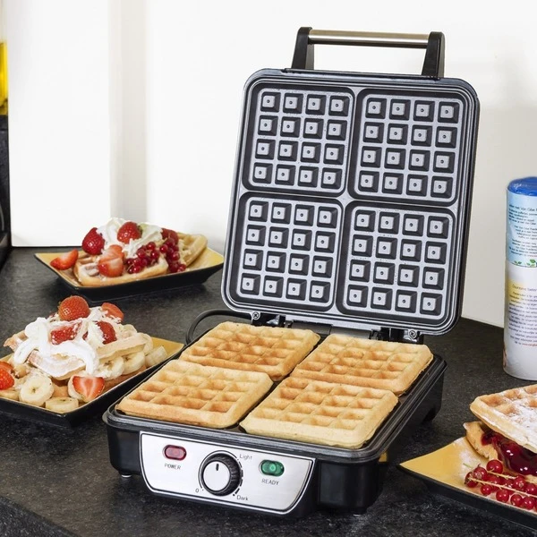 Mit dem Waffeleisen ASW281 kann man köstliche Waffeln nach Brüsseler Art zubereiten. In einem Durchgang können vier Waffeln mit 11cm x 11cm Größe gebacken werden. Die Temperatur kann nach den eigenen Wünschen eingestellt werden. Das hoch hitzebeständiges Gehäuse besteht aus hochwertigem Edelstahl und der große Griff ist wärmeisoliert. Dank der Antihaftbeschichtung ist die Reinigung einfach.