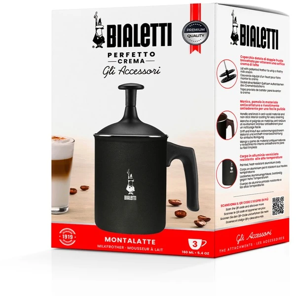 Tutto Crema, der manuelle Milchaufschäumer aus dem Hause Bialetti, überzeugt durch erstklassiges Können! Mit dem Kult-Design von Bialetti für den vollendeten Genuss von herrlichem Espresso und Cappuccino wie in Italien in Sekundenschnelle, verzaubert Tutto Crema durch Geschmack – doppelt so cremig und schnell – ein Grund, warum der Tutto Crema so beliebt ist. Mit dem doppelten und besonders feinmaschigen Siebeinsatz erzielt Tutto Crema extra schnellen, cremigen und üppigen Milchschaum – wie der Name schon sagt. Der Boden sorgt für optimale Wärmeleitung und ist für alle Herdarten, außer Induktion, geeignet. Dank der Antihaftbeschichtung brennt die Milch nicht an und sie erleichtert die anschließende Reinigung.