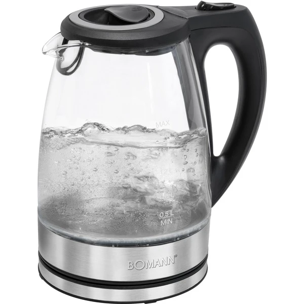 Mit dem Boman WKS 6032 G Wasserkocher aus hitzebeständigem Sicherheitsglas kann man bis zu 1,7 Liter Wasser aufkochen. Der Wasserkocher kann in jeder Position auf die Basisstation gestellt werden, dabei beendet ein Abheben sofort den Kochvorgang. Das verdeckte Edelstahlheizelement erleichtert die Reinigung. Neben einer automatischen und manuellen Abschaltung, sorgen ein verriegelter Sicherheitsklappdeckel sowie der Trockengeh- und Überhitzungsschutz für mehr Sicherheit.Art.-Nr.: 1610807