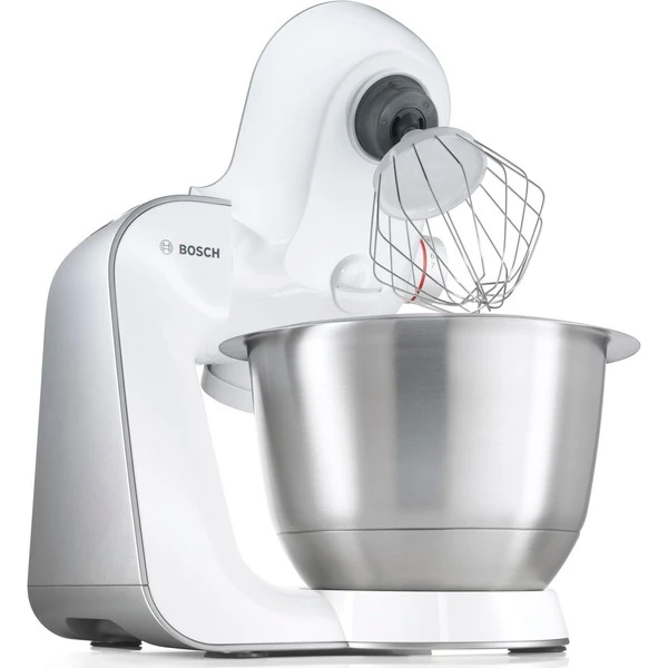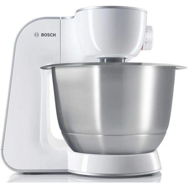 Die Küchenmaschine Bosch MUM54270 ist ein Universaltalent mit sieben Schaltstufen und einer zusätzlichen Momentstufe zum Zerkleinern und Hacken. Durch das vielfältige Zubehör, welches sich in der mitgelieferten Zubehörtasche verstauen lässt, macht Kochen und Backen wieder richtig Spaß. Dank des 3D-Rührsystems „Multi-motion-drive“ nimmt das Gerät einem alle Vorarbeiten ab, vom einfachen Mixen über Teigrühren, bis hin zum Zerkleinern. Die MUM 54270 besitzt eine Edelstahl-Rührschüssel für maximal 2 kg Teig sowie einen Mixer-Aufsatz mit einem Fassungsvermögen von 1,25 Liter. Somit besteht beim nächsten Rührkuchen die Herausforderung nur noch darin, das beste Rezept zu finden. In punkto Sicherheit glänzt die MUM 54270 mit einem Überlastungsschutz und rutschfesten Gummifüßen für einen sicheren Stand auf der Arbeitsfläche.Art.-Nr.: 1195116