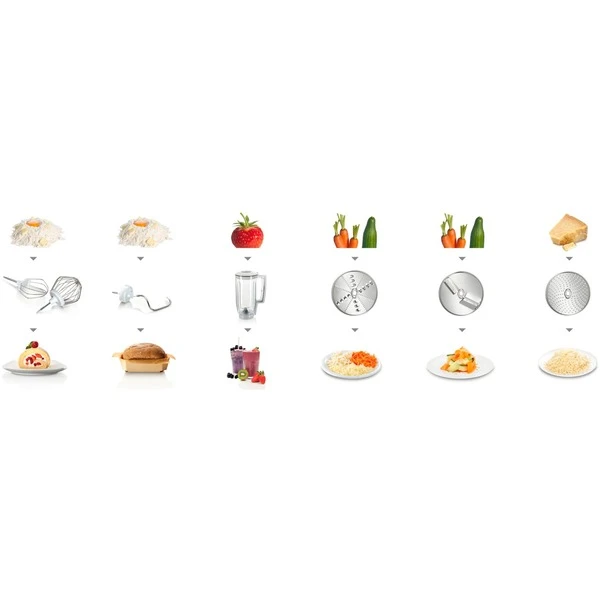| Verwendung | Aufschlagen, Rühren, Kneten, Mixen, Raspeln, Reiben, Schnitzeln, Zerkleinern | ||
