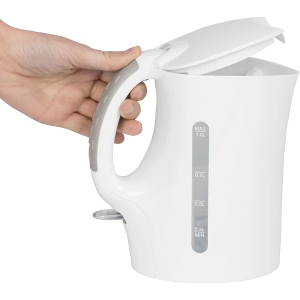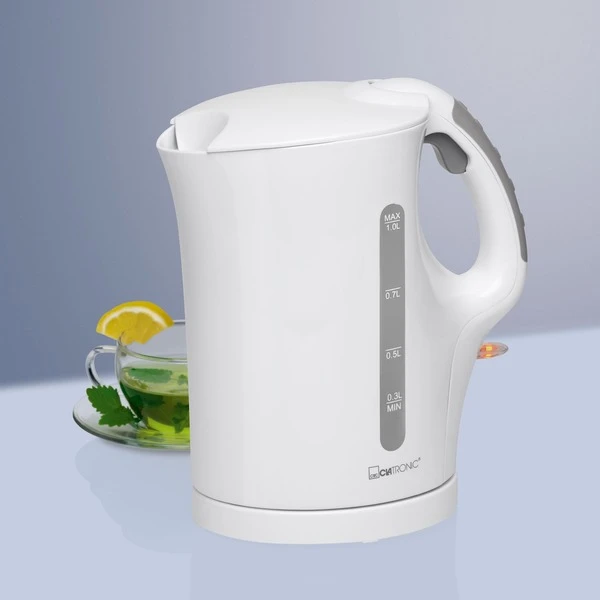 Mit einer Leistung von 900 Watt bringt der WK 3462 von Clatronic das eingefüllte Wasser schnell und effizient zum Kochen, dabei liegt die maximale Füllmenge bei einem Liter. Dank des Sicherheits-Klappdeckels kann der WK 3462 mit einer Hand geöffnet und befüllt werden, dabei lässt sich die Füllmenge über die außenliegenden Anzeigen einsehen. Zur besseren Reinigung ist der Kalkfilter herausnehmbar. Für eine hohe Sicherheit sorgen der Trockengeh- und Überhitzungsschutz sowie ein rutschfester, gummierter Griff.Art.-Nr.: 1654947