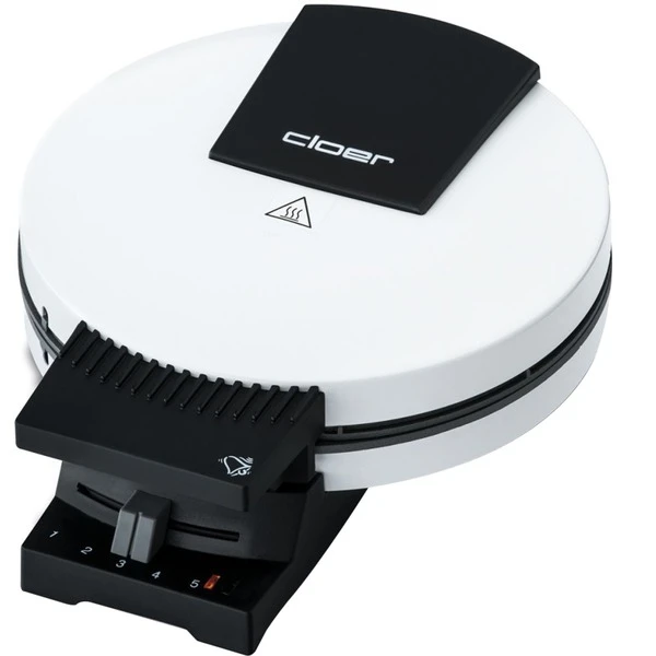 Der Cloer Waffelautomat 181 im weiß lackierten Metallgehäuse dient zum optimalen Backen von kuchenartigen Waffeln. Die antihaftbeschichtete Backfläche mit 20 cm Durchmesser bietet ein fettarmes Backen. Der Bräunungsgrad kann mit einem Schieberegler an der Gerätefront stufenlos eingestellt werden und die optische und akustische Fertigmeldung gibt Auskunft darüber, wann die Waffeln fertig gebacken sind. Das Scharnier an der Gerätefront des Waffeleisens ist flexibel, damit die Waffeln richtig aufgehen können. Die Antihaftbeschichtung der Backfläche ermöglicht fettarmes Backen und erleichtert anschließend die Reinigung. Der Waffelautomat 181 bietet außerdem eine platzsparende, auf den Griffen stehende Aufbewahrung.Art.-Nr.: 942740