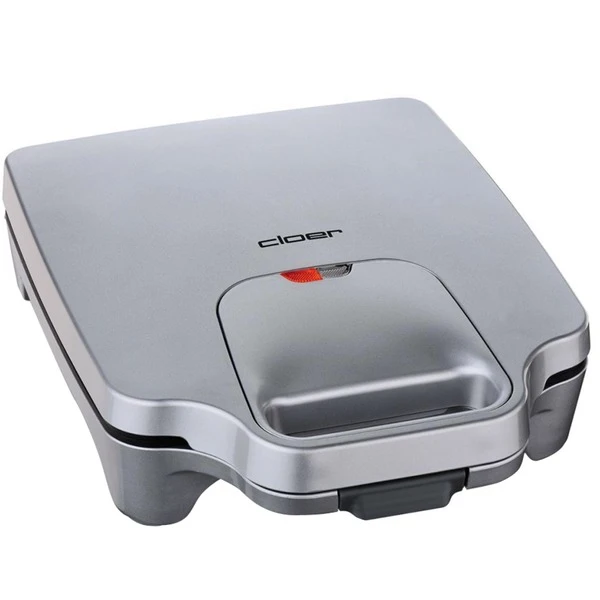 Der Cloer XXL-Sandwichmaker 6269 besitzt ein silber lackiertes Kunststoffgehäuse und Platz für 4 Sandwiches, je diagonal geteilt für American Toasts und XXL Füllung. Der Bräunungsgrad ist fest eingestellt, die Antihaftbeschichtung sorgt für fettarmes Backen. Die rutschfesten Gummifüße bieten Sicherheit gegen Verrutschen auf der Arbeitsfläche.Art.-Nr.: 1675951