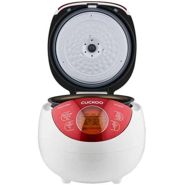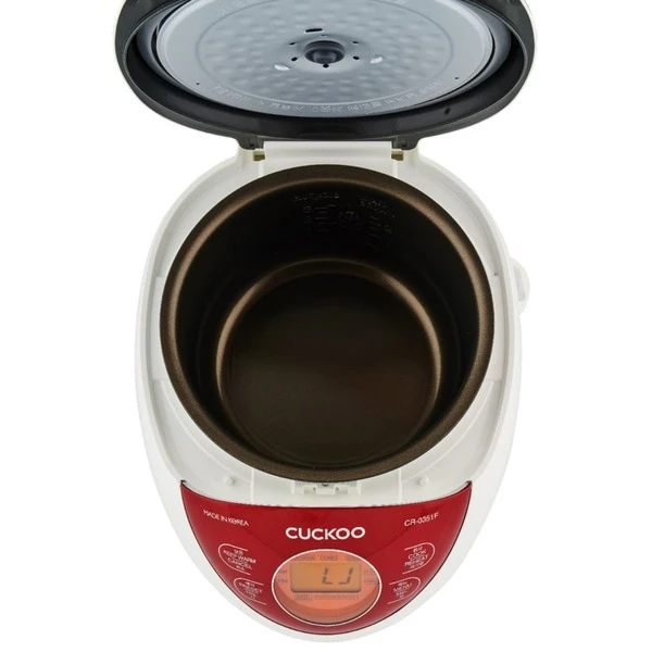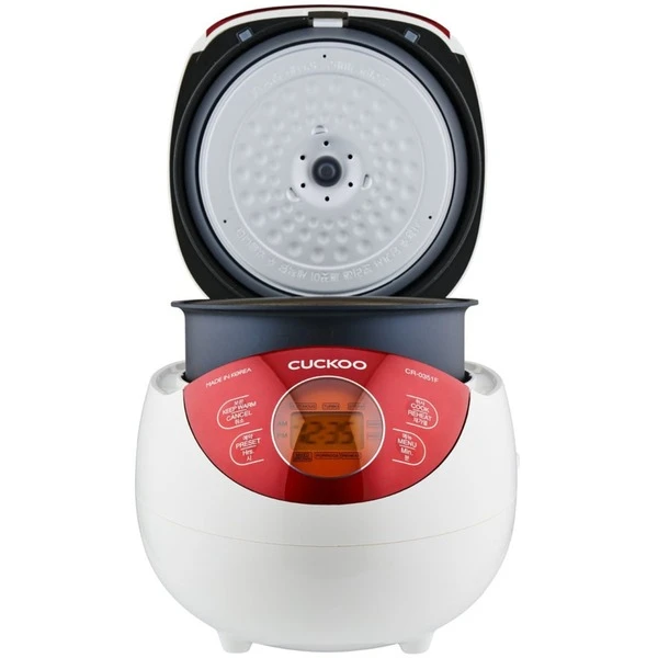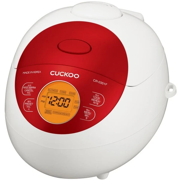 Der Cuckoo CR-0351F Reiskocher zeichnet sich nicht nur durch seine hochwertig verbauten Materialien aus, auch technisch besitzt der Cuckoo CR-0351F alles was man für eine perfekte Reiszubereitung benötigt. Mit einem Volumen von 0,54 Litern ist er für Reisportionen von 4-6 Personen durchaus ausreichend. Durch eine Vielzahl von Einstellungsmöglichkeiten wie der 3D Heizmethode, einem LC-Display, eine Knopf für „easy to use“, fünf unterschiedlichen Kochmodi, wie Turbo, Gaba oder My-Modus, sowie einem antihaftbeschichteten Innentopf schafft er es den Reis perfekt und ganz sicher ohne Anbrennen zuzubereiten. Im My-Modus stehen 16 Variationen zur Verfügung um die Konsistenz des Reises dem individuellen Geschmack anzupassen. Darüber hinaus verfügt der Reiskocher über eine Warmhaltefunktion, die den Reis nach dem Kochen warm und frisch hält – und den Reis vor dem Austrocken bewahrt. Die Sicherheitsmodi sorgen dafür, dass während der Reiszubereitung und auch in dem anschließenden Warmhaltemodus nichts Unerwartetes passieren kann. Das Design ist schlicht, sehr schick und die frischen Farben verleihen dem Cuckoo CR-0351F einen jugendlichen Charakter.