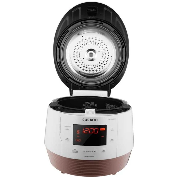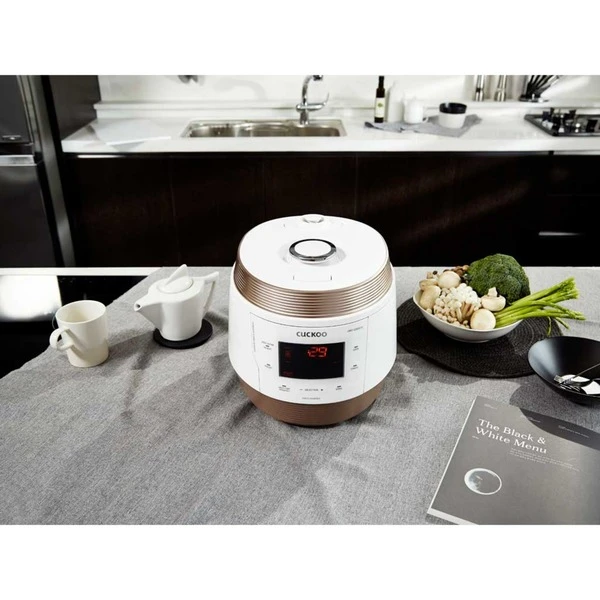 Der Cuckoo CMC-QSB501S ist ein reiner Dampfdruck Multikocher aus dem Hause Cuckoo. Mit seinen unzähligen Funktionen und Einstellungen bietet er viele Möglichkeiten, um unterschiedliche Gerichte im Handumdrehen zu kochen. Mit dem Kocher der „Icook Q5“-Serie können nahezu alle Speisen zubereitet werden, denn er verfügt über Funktionen wie: Schnellkochtopf, Schongarer, Reiskocher, Sauteuse, Dampfkochtopf, Speisenwärmer, Joghurtbereiter, Suppenkocher. Die Reinigung ist das reinste Kinderspiel, denn der CMC-QSB501S verfügt über einen internen, starken Düsenstrahl, der mit einem simplen Knopfdruck betätigt wird und alle Essensreste aus dem Topf ganz automatisch hinausspült. Neun verschiedene Erhitzungsvariationen von 35 °C bis zu 125 °C und ein programmierbarer Timer von einer Minute bis zu zwölf Stunden stehen zur Verfügung. Die gewünschte Kochtemperatur wird durch die Seitenwände, den Deckel als auch den Boden des Topfes geleitet, sodass die Kochwärme gleichmäßig abgestrahlt wird. Diese Technologie ermöglicht eine besonders schnelle und zugleich äußerst schonende Zubereitung der Lebenmittel. Art.-Nr.: 1759145