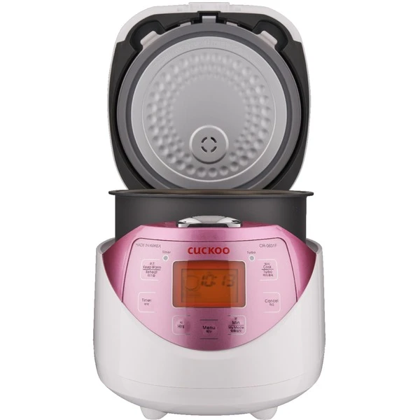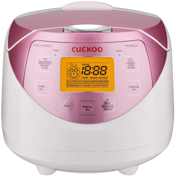 Der Reiskocher CR-0631F mit Fuzzy-Logic-Technologie von Cuckoo kocht den leckersten Reis in rund 18 Minuten. Das Modell zeichnet sich letztlich nicht nur durch seine hochwertig verbauten Materialien aus auch technisch besitzt der Cuckoo CR-0631F alles was man für eine perfekte Reiszubereitung benötigt. Mit einer großen Anzahl von Einstellungsmöglichkeiten, darunter ein Knopf für “easy to use”, sechs unterschiedliche Kochfunktionen (Klebreisfunktion, Gemischter-/Brauner Reis/langsames Kochen, Turboklebreis, Brei, sowie eine Gaba-Reisfunktion), einem Turbo- oder mein Modus bleiben keine Wünsche der Zubereitung mehr offen. Durch den antihaftbeschichteten Innentopf, wird der Reis perfekt und ganz sicher ohne Anbrennen zubereitet. Das intuitive Micom-System und die Fuzzy-Logic-Technologie sorgen dafür, dass je nach Reissorte einfach einer der Modi ausgewählt werden kann und der CR-0631F erledigt den Rest in ca. 18 Minuten vollautomatisch. Das einzigartige Drainage-System ermöglicht es überschüssige Wasserdämpfe auf intelligente Weise in einen eigens dafür konzipierten Wasserauffangbehälter zu sammeln. Die Speisen bleiben somit vor überschüssigen und rücklaufenden Wasserdämpfen verschont. Darüber hinaus verfügt der Reiskocher über eine Warmhaltefunktion, die den Reis nach dem Kochen automatisch warm und frisch hält. Die Sicherheitsmodi sorgen dafür, dass während der Reiszubereitung und auch in dem anschließenden Warmhaltemodus nichts Unerwartetes passieren kann. Das Design ist schlicht, sehr schick und die frischen Farben verleihen dem Cuckoo CR-0631F einen jungen Charakter. Mit einem Volumen von 1,08 Litern ist er für Reisportionen von bis zu sechs Personen durchaus geeignet.