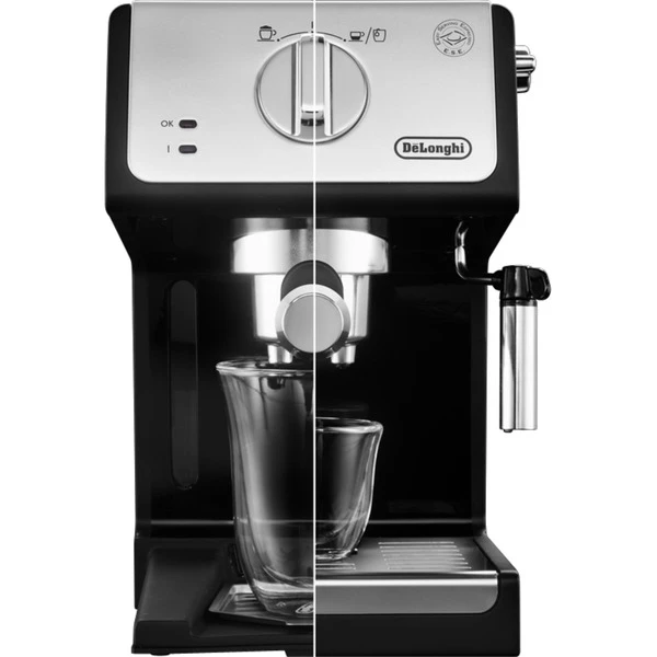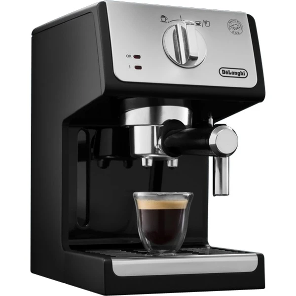 Die DeLonghi Active Line ECP 33.21.BK ist eine Espressomaschine für Kaffeepulver und Easy Serving Espresso (E.S.E.)-Pads. Einfach die Lieblings-Geschmacksrichtung oder das Lieblings-Pad wählen und einen ergiebigen, milden Espresso mit einer perfekten Crema zubereiten. Der professionelle Siebträgerhalter sorgt für eine konstante Kaffeetemperatur während der Zubereitung bis in die Tasse. Der Druck von 15 bar sorgt für einen Espresso mit vollem Aroma und einer nussfarbenen Crema oben drauf. Mit der Kombination aus professioneller Milchaufschäumdüse und herausnehmbarer Auffangvorrichtung können Cappuccino, Latte Macchiato und andere Milch-Kaffeespezialitäten auch zu Hause stilecht in hohen Gläsern zubereitet werden. Die zusätzlichen Filtereinsätze (für 1 oder 2 Tassen und E.S.E. Pads) und der Tamper können ordentlich im Gerät verstaut werden. Die Espressomaschine schaltet sich automatisch 9 Minuten nach der letzten Benutzung aus. Das spart Energie und schont die Umwelt.Art.-Nr.: 1628153