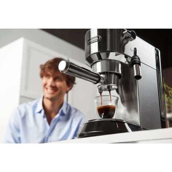Die DeLonghi EC 860.M ist eine Espressomaschine für Kaffeepulver aber auch E.S.E-Pads dank dem professionellen Kombi-Siebträger. Das von DeLonghi patentierte Automatic Cappuccino System bereitet köstlichen Cappuccino und Latte Macchiato. Praktisch an der EC 860.M ist der herausnehmbare Wassertank mit einer Kapazität von einem Liter. Der konstante Druck von 15 Bar sorgt dabei für einen gleichmäßigen Brühvorgang. Die EC 860.M besitzt eine beheizte Tassenabstellfläche, damit der Kaffee immer mit der richtigen Temperatur getrunken werden kann sowie eine Standby- und Energiesparfunktion.Art.-Nr.: 1045281