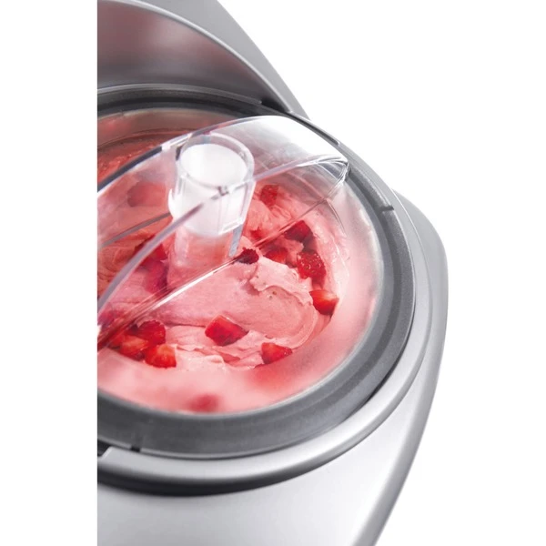 Die Eismaschine DeLonghi ICK 6000 überzeugt mit einzigartiger Mix-Technik. Zwei entgegengesetzt rotierende Schaufeln mixen die Zutaten zu einem perfekten Eis-Ergebnis. Der Edelstahlbehälter mit 1,2 Liter ist herausnehmbar und lässt sich bequem reinigen. Rutschfeste Gummifüße sorgen für einen sicheren Stand. Als Zubehör erhält man ein Rezeptbuch mit 50 Rezepten zum ausprobieren.Art.-Nr.: 856760
