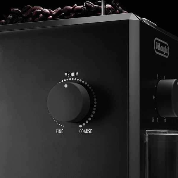 Die DeLonghi Kaffeemühle KG79 mit Kegelmahlwerk verarbeitet mit zwei hochwertigen Mahlscheiben die Kaffeebohnen schonend bis zum eingestellten Mahlgrad, der individuell von grob bis ganz fein eingestellt werden kann. Über einen Drehknopf wird bei der Kaffeemühle KG79 vorab die benötigte Pulvermenge (2 bis 12 Tassen) gewählt. Der abnehmbare Pulverauffangbehälter sorgt für eine leichte Entnahme des gemahlenen Kaffees und die obere Mahlscheibe kann zur leichten Reinigung entnommen werden. Die praktische Kabelaufwicklung der Kaffeemühle KG79 für nicht benötigtes Kabel rundet die angenehm einfache und sichere Handhabung des Gerätes ab.Art.-Nr.: 966857