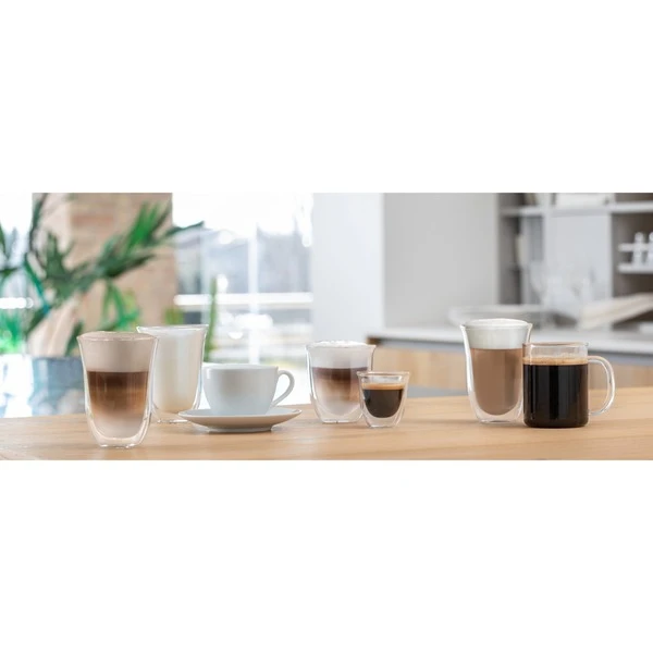 | Funktionen | Wassertank abnehmbar, Abtropfschale herausnehmbar, Milchaufschäumdüse, Heißwasserfunktion, Kaffeeauslauf höhenverstellbar, Abschaltautomatik, 2-Tassen-Bezug, Wasserhärte programmierbar, Mahlgrad einstellbar, Mahlmenge programmierbar, Wassermenge programmierbar, Heißwasserauslass | ||