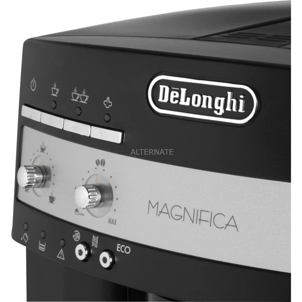 Die Magnifica ESAM 3000.B von DeLonghi ist ein Kaffee-Vollautomat der Extraklasse. Nach dem Anschalten braucht die Maschine ca. eine Minute zum Erhitzen, dann gibts auch gleich schon den ersten Kaffee. Der Automat ist sehr leicht zu bedienen, der Wassertank kann ganz einfach nach vorne entnommen und gefüllt werden. Der Bohnenbehälter befindet sich oben drauf, genauso wie auch der Kaffeepulver-Behälter. Der Mahlgrad sowie die Kaffeemenge und die Stärke können einfach eingestellt werden. Es gibt eine Düse extra zum Aufschäumen für einen Milchkaffee. Die Magnifica ESAM 3000.B hat auch eine Einstellung für Tassengrößen wie z. B. Ristretto, Espresso und Lungo. Sobald eine Entkalkung nötig ist, wird es angezeigt und man kann mit wenigen Handgriffen ein Entkalkungsprogramm abspielen lassen, dass ca. eine halbe Stunde dauert.Art.-Nr.: 788610