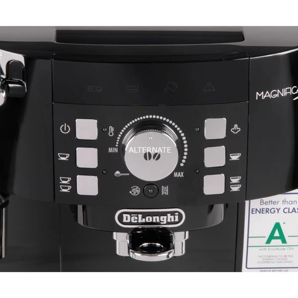 Die Magnifica S ECAM 21.117.B von DeLonghi ist ein Kaffeevollautomat der Extraklasse. Nach dem Einschalten benötigt die Maschine ca. eine Minute zum Erhitzen, anschließend kann man sich auch gleich schon den ersten Kaffee zubereiten. Der Automat ist sehr leicht zu bedienen, der Wassertank kann ganz einfach nach vorne entnommen und befüllt werden. Der Bohnenbehälter mit Aromaschutzdeckel befindet sich oben, genauso wie auch der Kaffeepulverschacht. Der Mahlgrad sowie die Kaffeemenge und -stärke können einfach eingestellt werden. Die integrierte Milchaufschäumdüse ermöglicht zudem die Zubereitung von traditionellem Milchschaum oder heißer Milch für zusätzlichen Kaffeegenuss. Sobald eine Entkalkung nötig ist, wird es angezeigt und man kann mit wenigen Handgriffen ein Entkalkungsprogramm abspielen lassen, das nach ca. einer halben Stunde abgeschlossen ist.Art.-Nr.: 1034618