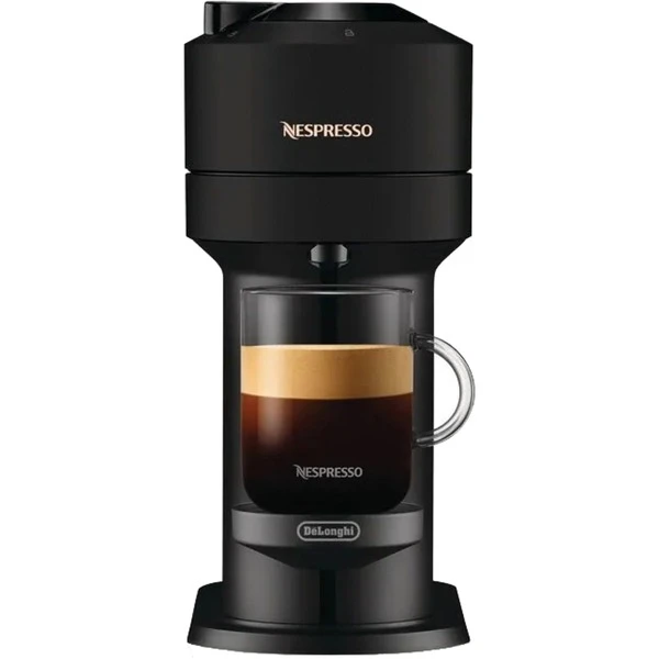 Nespresso präsentiert das Kapselsystem Vertuo von DeLonghi, die designstarke Innovation für Kaffeegenießer. Das System überrascht mit einer großen Tasse Kaffee mit einer außergewöhnlich reichhaltigen Crema und vollem Körper. Dank der innovativen Centrifusion Technologie wird jeder Tropfen Kaffee sanft und gleichmäßig extrahiert. Durch die Barcode-Erkennung bereitet die Maschine automatisch für jede Röstmischung die optimale Tasse Kaffee in Größe und Qualität zu. Dabei werden verschiedene Parameter wie Wassermenge, Temperatur, Brühzeit und Rotationsgeschwindigkeit perfekt auf die Kaffeemischung abgestimmt. Mit nur einem einfachen Tastendruck wird ein umfassendes Angebot an unterschiedlichen Kaffeevarietäten in drei Kapselgrößen für jeden Geschmack und in verschiedenen Tassengrößen zubereitet. Die Vertuo Next zeichnet sich durch eine kompakte Stellfläche aus.Art.-Nr.: 1856904