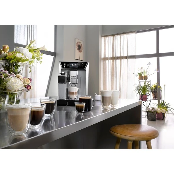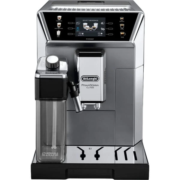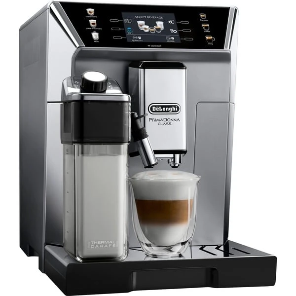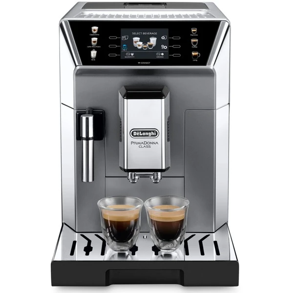 Der PrimaDonna Class ECAM 550.85.MS von DeLonghi ist ein Kaffeevollautomat der Extraklasse. Der Automat ist sehr leicht zu bedienen. Man wählt Getränke ganz einfach auf dem intuitiven Touchscreen-Display aus und kombiniert es mit der Coffee Link App zur Personalisierung der eigenen Lieblingsgetränke. Der Mahlgrad kann einfach eingestellt werden. Das LatteCrema Hot bietet dichten und cremigen Milchschaum bei de richtigen Temperatur. Dank Temperaturregelung durch das hochpräzise, elektronisch gesteuerte Dampfsystem sorgt dafür, dass der Dampf bei optimaler Temperatur erzeugt wird und so das perfekte Ergebnis in der Tasse landet. Die integrierte Reinigungsfunktion erfüllt höchste Hygieneansprüche. Nach der Getränkezubereitung werden die Teile, die mit Milch in Berührung kommen, mit Heißwasser und Dampf gereinigt.Art.-Nr.: 1896296