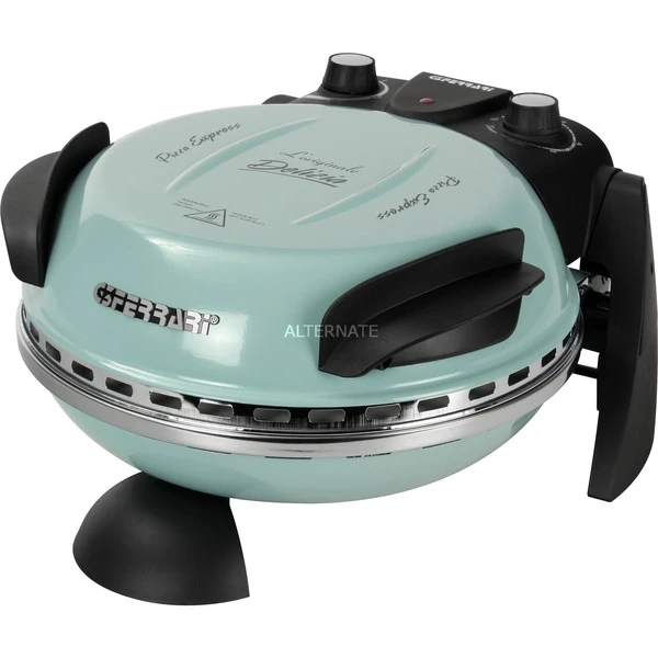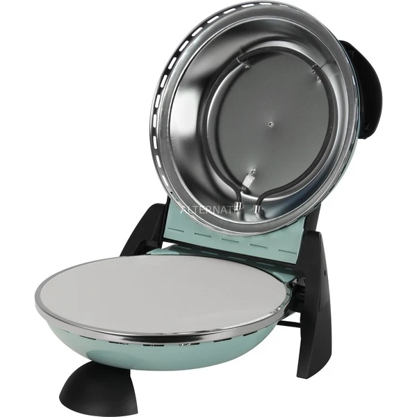 Mit dem elektrischen Pizzamaker Delizia von G3 Ferrari gelingen Pizzen zu Hause so einzigartig und knusprig wie aus dem Steinbackofen beim Italiener. Der G3 Ferrari Pizzaofen erreicht Temperaturen von bis zu 400 Grad, für perfekte Backergebnisse. Er eignet sich auch zum schnellen Aufwärmen und Aufbacken von frisch duftendem Brot, Croissants und Baguette. Blitzschnell in nur ca. 5 Minuten ist selbstgemachte Pizza servierbereit, Tiefkühlpizza in ca. 3 Minuten. Durch das Backen mit dem feuerfesten, lebensmittelechten Naturstein wird die Feuchtigkeit des Teiges absorbiert und die Hitze im Stein gespeichert und gleichmäßig an den Teig abgegeben. Das Ergebnis ist ein besonders gleichmäßig knuspriger Boden, lecker und kross. Der Pizzaofen Delizia bietet vielfältige Möglichkeiten, morgens, mittags und abends: Leckere warme Brötchen oder Toast am Morgen, frische Burritos oder Wraps zu Mittag, krosse neapolitanische Pizza, Fladen, Lahmacun oder Flammkuchen zum Feierabend. Dabei ist der Pizzaofen praktisch, einfach in der Bedienung und so kompakt, dass er einfach mitgenommen werden kann, zum Geburtstag, Filmevent, Fußballspiel, Mädelsabend, Camping, nettes Zusammensein oder als Geschenkidee. Durch das ansprechende Design und die vielen erhältlichen Farben ist der Pizzaofen ein Blickfang für jede Küche.Art.-Nr.: 1861503