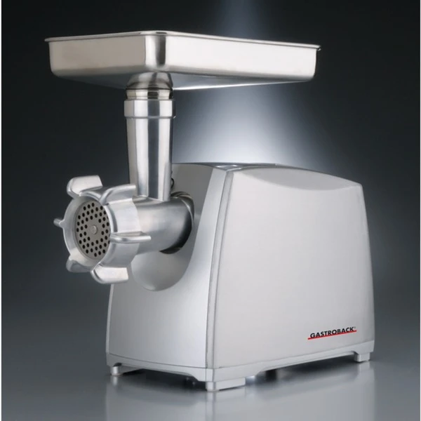 Der Gastroback Fleischwolf 41408 hat eine Leistung von 600 Watt. Durch den Fleischwolfaufsatz lassen sich alle Arten von Fleisch und Fisch drehen und zerkleinern. Über eine große Einfüllschale aus Edelstahl wird das Fleisch zugeführt. Die Lochscheiben sind ebenfalls aus Edelstahl und das Schneckengehäuse, die Schnecke und der Verschlussring des Fleischwolfs 41408 sind aus Aluminium-Guss gefertigt.Art.-Nr.: 1237189