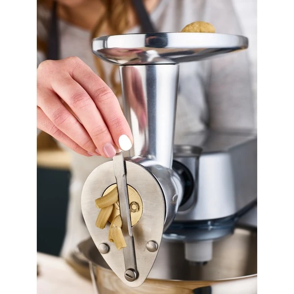 Was gibt es besseres, als selbstgemachte Nudeln? Mit dem Pasta Fresca Aufsatz KAX92.A0ME aus hochwertigem Edelstahl für Kurznudelarten lassen sich köstliche Maccheroni Rigati herstellen. Ein verchromtes Metallgehäuse und ein Teigwareneinsatz in Bronze helfen, dass der Teig nicht anklebt. Durch das manuell verschiebbare Edelstahlmesser kann die Pasta nach individuellen Vorlieben abgeschnitten werden. Zur Herstellung verschiedener Nudelformen kann dieser Profi-Nudelaufsatz ist mit 13 verschiedenen Teigwareneinsätzen ergänzt werden.Art.-Nr.: 1696386