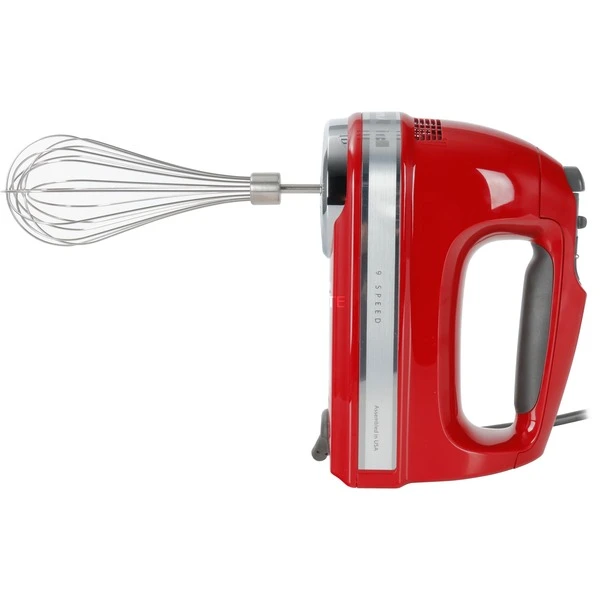 Mit dem KitchenAid-Digital-Handrührer 5KHM9212EER in der Farbe „Empire Rot“ mit neun Geschwindigkeitsstufen wird jede Mahlzeit ein Meisterwerk. Niedrige Geschwindigkeiten sind ideal zum Rühren köstlicher Soßen und Milchshakes ohne Spritzer. Bei höheren Geschwindigkeiten kann man auch schweren Teig vermengen. Die höchsten Geschwindigkeitsstufen schlagen Sahne und Eiweiß perfekt steif. Der Digital-Handrührer 5KHM9212EER ist der kleine Bruder der klassischen KitchenAid-Küchenmaschine: perfekt für begeisterte Köchinnen und Köche und all jene, die nur wenig Platz auf der Arbeitsplatte haben. Der in den USA hergestellte, robuste Gleichstrommotor mit 85 Watt wird durch eine digitale LED-Anzeige ergänzt, für noch mehr Präzision und Kraft. Das umfassende, mitgelieferten Zubehör ist für jedes Backrezept ausreichend. Mit nur 1,1 Kilogramm und einem weichen komfortablen Griff, ist der leichte Handrührer 5KHM9212EER bequem mit nur einer Hand zu verwenden. Das Anschlusskabel mit Drehgelenk ermöglicht besondere Flexibilität, so dass man sich während des Mixens frei bewegen kann.Art.-Nr.: 1329415