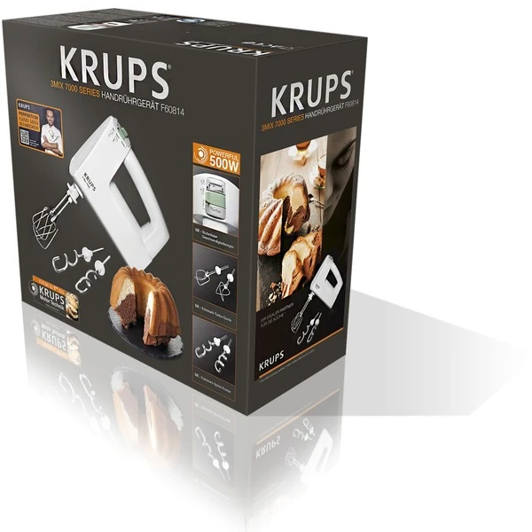 Noch nie war Mixen so einfach: Mit dem KRUPS 3MIX 7000 Handmixer stellt man im Handumdrehen perfekten Back- oder Rührteig, Eischnee und Schlagsahne her. Dieses einfach zu bedienende Küchengerät ist mit Quirlen aus Edelstahl ausgestattet und sorgt dafür, dass man perfekten Eischnee für köstliche Baiser, Mousse, Soufflé, Schlagsahne und vieles mehr zaubern können. Die dicken Edelstahl-Knethaken sorgen dabei für ein perfektes Ergebnis für alle Teigarten – zur einfachen Zubereitung von leckerem Brot-, Pizzateig oder Hefegebäck. Dieser perfekte Handmixer wird durch den ergonomischen Griff – der für optimalen Halt und Bedienkomfort sorgt – und durch der stufenlosen Geschwindigkeitsregulierung und die Turbostufe – für eine perfekte Steuerung – abgerundet.Art.-Nr.: 1479190