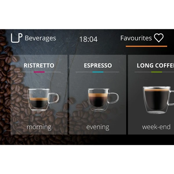| Feature | One-Touch-Cappuccino (OTC) Funktion, Two-in-One Touch System: Gleichzeitige Zubereitung von 2 Milchmixgetränken, Erkennungssystem für leeren Wassertank, Intuitive Light Indicator-Technologie (Anpassbare Lichtanzeige), 8 individuell anpassbare Lieblingsgetränke | ||