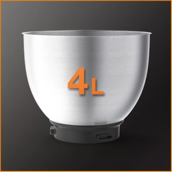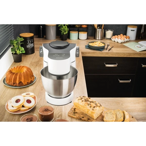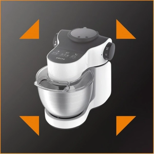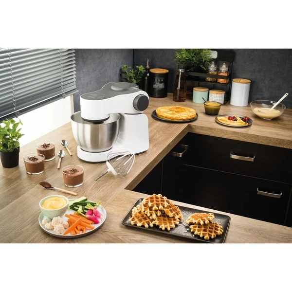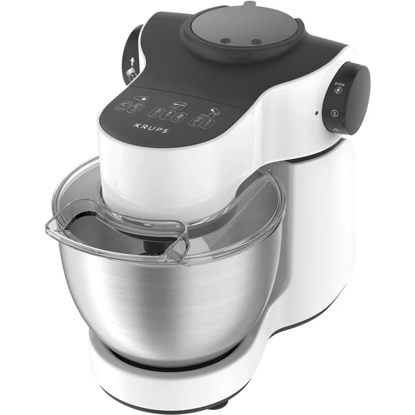 Die Master Perfect von Krups ist ein vielseitiger Helfer in der Küche. Mit dem planetarischen Rührsystem, einer Leistung von 1000 Watt und sieben Geschwindigkeitsstufen stellt Mixen, Aufschlagen, Kneten und Quirlen kein Problem dar. Die einzigartige und patentierte Flex Whisk Technologie quirlt das Eiweiß, sogar von nur einem Ei, in kurzer Zeit steif. Die Edelsthal-Schüssel hat ein Volumen von 4 Litern und bietet so Platz auch für größere Mengen. Durch das Zubehör eignet sich diese Küchenmaschine auch zum Schneiden und Raspeln. Die Master Perfect findet dank des kompaktes Designs und angesagten Looks in jeder Küche Platz.