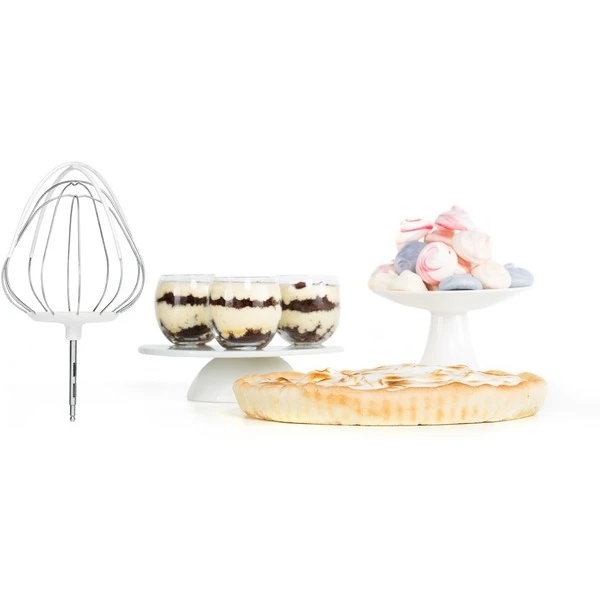 | Zubehör | vorhanden | Flex Whisk-Schneebesen, Kunststoff-Rührbesen, Edelstahl-Knethaken, Schneide-/Raspelgerät mit 4 Edelstahleinsätzen | |