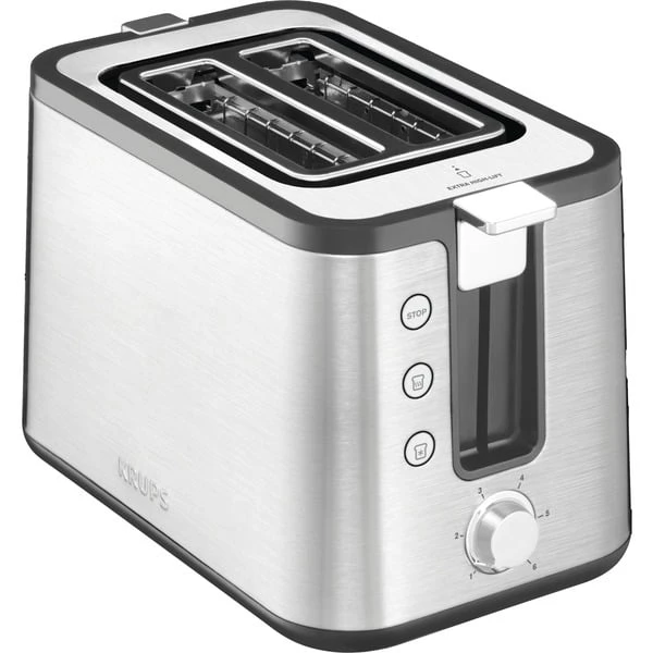 Der Toaster KH442D aus der Control Line Frühstücksserie von Krups eignet sich zum Toasten von zwei Toastbrotscheiben. Eine gesonderte Stopp-Taste stoppt jederzeit den Röstvorgang und eine separate Aufknuspertaste ermöglicht ein schnelles Aufwärmen oder Nachrösten von bereits getoastetem Brot. Der integrierte Brötchenaufsatz des Control Line KH442D lässt auch Brötchen im Handumdrehen wieder knusprig werden. Außerdem bietet er eine Hebe-Funktion zur sicheren Entnahme kleiner Brotscheiben und eine automatische Abschaltung, sollte sich einmal eine Brotscheibe verklemmen. Dank der herausnehmbaren Krümelschublade des Control Line KH442D lassen sich auch die lästigen, aber unvermeidbaren Krümel ganz leicht entfernen.Art.-Nr.: 1309304