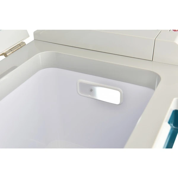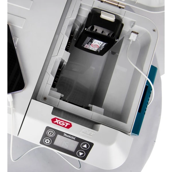 Die Akku-Kühl- und Wärmebox Makita CW001GZ01 verfügt über ein großzügiges Fassungsvolumen von 20 Litern, was beispielsweise 20 PET-Flaschen á 500 ml entspricht. Für Flaschen mit Kronkorken ist ein Flaschenöffner an die Geräteseite eingelassen. Es sind sieben Kälte-Stufen von -18° bis 10° C und sieben Wärme-Stufen 30° bis 60° C einstellbar. Ein großes LED-Display zeigt die Soll- und Ist-Temperatur sowie den Akku-Ladestand. Die CW001GZ01 bietet eine Akku-Laufleistung von bis zu 28 Stunden und auch der Dauerbetrieb von 10 Tagen oder mehr ist für den Kompressor kein Problem, wodurch sich die Kühlbox sogar als Camping-Kühlschrank eignet. Der Betrieb ist mit 40 V max. oder 2 x 18 V Akkus möglich. Für 40 V max. stehen ein zweiter Akku-Steckplatz zur Verfügung, das verdoppelt die Laufzeit. Alternativ zum Akku-Betrieb kann die Akku-Kühl- und Wärmebox mit einem Kabel an das 230-V-Stromnetz oder aber an die 12-V-/24-V-Autosteckdose angeschlossen werden. Besonders komfortabel ist der ausklappbare Handgriff, wodurch die CW001GZ01 kräfteschonend über zwei Rollen gezogen werden kann. Ein neben dem Akku-Schacht platzierter USB-Anschluss kann zum Laden von Navigationsgeräten oder anderen mobilen Endgeräten verwendet werden.Art.-Nr.: 1880614