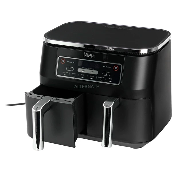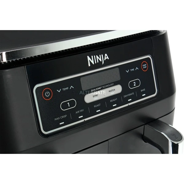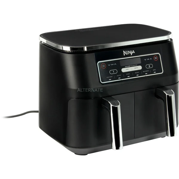 Mit der Heißluftfritteuse Nutri Ninja Foodi Dual Zone AF300EU kann man zwei unterschiedliche Mahlzeiten gleichzeitig zubereiten. Mit den Ninja Heißluftfritteusen spart man die Energiekosten des Backofens. Die Nutri Ninja Foodi Dual Zone AF300EU ist mehr als eine Heißluftfritteuse – Die Ninja Foodi Dual Zone bietet gleich 6 Zubereitungsfunktionen in einem Gerät: Max Crisp, Braten, Backen, Aufwärmen, Dörren und Heißluft-Frittieren. Beim Kochen ist Timing alles. Die Ninja Foodi Dual Zone Heißluftfritteuse mit 7,6 l Fassungsvermögen bereitet Speisen gleichzeitig auf den Punkt zu. Dank 2 unabhängiger Garzonen kann man Programme, Garzeiten und Temperaturen in beiden Fächern individuell einstellen und so im Handumdrehen köstliche Mahlzeiten zaubern. Mit der SYNC-Funktion stimmt man die unterschiedlichen Zubereitungszeiten miteinander ab und kann alles zur gleichen Zeit servieren. Und wenn man für die ganze Familie kocht, kann man mit der MATCH-Funktion problemlos die doppelte Menge zubereiten.Art.-Nr.: 1908377