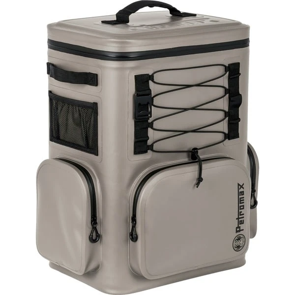 Der Petromax Kühlrucksack 27 Liter hält Speisen und Getränke unterwegs bis zu acht Tage lang frisch – dank stromunabhängiger Kühlung mit Eiswürfeln. Er bietet Platz für 13 stehende 1-Liter-Getränkeflaschen oder ein Sixpack Bier plus Grillgut. Die komfortable Rückenpolsterung, der Brust- und Hüftgurt sowie die individuell verstellbaren Schultergurte sorgen für einen angenehmen Tragekomfort. Dank des Tragegriffs und der beiden Griffe an den Seiten lässt sich der Kühlrucksack bequem abstellen, um ein eisgekühltes Getränk zu entnehmen. Das wasserabweisende Nylongewebe, der wasserdichter Reißverschluss und die schmutzabweisende Oberflächen sorgen für eine lange Haltbarkeit. Der Kühlrucksack 27 Liter verfügt über eine große, wasserdichte Fronttasche, zwei große, wasserdichte Seitentaschen sowie zwei praktische Netztaschen. An den Laschen lässt sich kleineres Zubehör transportieren, größeres an Karabinerhaken. Weitere Gegenstände können mithilfe der Spanngummis befestigt werden und das wohlverdiente kühle Bier öffnet man nach dem Transport einfach mit dem integrierten Flaschenöffner.Art.-Nr.: 1919468