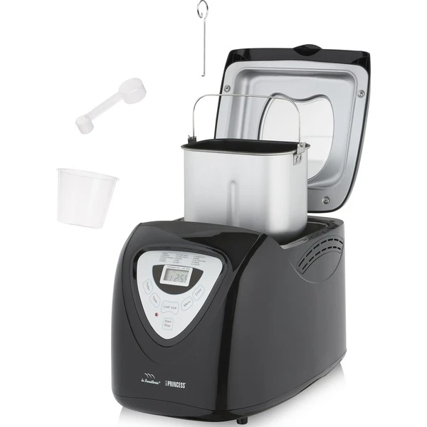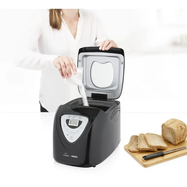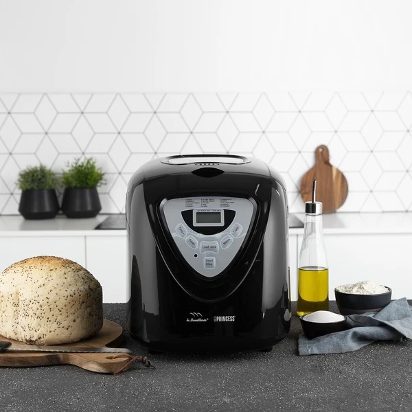 Wer liebt nicht den einzigartigen Geruch von frisch gebackenem Brot? Mit dem Princess 152009 Brotbackautomaten kann man diesen Duft nun jederzeit auch zu Hause genießen. Im Gegensatz zu echten Bäckern braucht man aber nicht vor dem Morgengrauen aufzustehen, um mit dem Backen anzufangen. Die Zutaten werden einfach in die Maschine gegeben und dank der Zeitvorwahl ist das frische Brot morgens fertig. Der perfekte Start in den Tag. Der Brotbackautomat verfügt über 15 automatische Programme, so ist für jeden Geschmack etwas dabei. Über das digitale Bedienfeld können die Einstellungen an die individuellen Vorstellungen angepasst werden. Auch die Krustenfärbung lässt sich von eher hell auf dunkles Brot einstellen. Die Princess Brotbackmaschine kann Brote bis 900 g backen. Das sind etwa 14 Scheiben Brot – genug für die ganze Familie. Ob saftiges Bananenbrot oder ein herzhaftes Roggenbrot, der Brotbackautomat ist vielseitig einsetzbar. Denn er eignet sich auch ideal für Marmelade, Joghurt, Kuchen und sogar für Reis. Für Personen mit einer Gluten-Intoleranz oder für Allergiker ist die Princess Brotbackmaschine eine echte Bereicherung. Dank einem speziellen Backprogramm kann man nun ein frisches glutenfreies Brot selbst herstellen. Über das intuitive Display des Princess Brotbackautomaten lässt sich ganz einfach das optimale Programm auswählen. Es gibt acht Einstellungen für verschiedene Brotsorten, z. B. Vollkorn, Süß, Französisch, Glutenfrei, sowie drei ultraschnelle Einstellungen. Marmelade, Joghurt, Kuchen und nur Kneten oder Gehen lassen sind auch möglich. Für weiteren Komfort sorgen der Timer, so können bis zu 13 Stunden im Voraus die Zutaten zugeben werden, bevor der eigentliche Backvorgang startet und die Warmhaltefunktion, die frisches Brot bis zu 60 Minuten warmhält. Art.-Nr.: 1703538