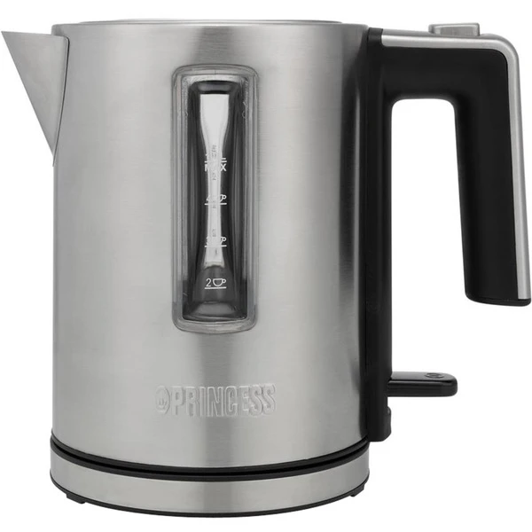 Der minimalistische Wasserkocher Deluxe 236045 von Princess mit einem Fassungsvermögen von einem Liter nimmt wenig Platz ein, macht aber keine Kompromisse bei der Leistung. Mit einer Leistung von 2200 Watt bringt der Edelstahlkocher das Wasser schnell zum Kochen – und man kann eine köstliche Tasse Tee genießen. Dank des schönen minimalistischen, schlanken Designs des Wasserkochers macht er auf jeder Arbeitsfläche eine gute Figur. Der Wasserkocher Deluxe hat ein Gehäuse aus Edelstahl, das nicht nur sehr robust, sondern auch sehr modern ist. Darüber hinaus gibt der Wasserkocher ein schönes blaues Licht ab, wenn er kocht. Hat das Wasser die richtige Temperatur erreicht, schaltet sich das Licht aus. Das verdeckte Heizelement hat eine hohe Leistung von 2200 Watt und erhitzt das Wasser schnell. So muss man nie lange warten. Dank der hochwertigen Basis steht der Wasserkocher fest auf der Arbeitsplatte und kann um 360⁰ gedreht werden. Sehr nützlich für Links- und Rechtshänder zugleich. Ausgestattet ist der Wasserkocher dazu noch mit einer Wasserstandsanzeige, einem herausnehmbaren Ausgießfilter und Deckelöffnung per Knopfdruck. Für einen sicheren Gebrauch sorgen die Abschaltautomatik, der Überhitzungs- und Trockengehschutz.