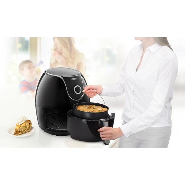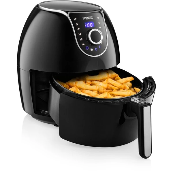 Mit dem Digital Family Aerofryer von Princess wird die Zubereitung von Speisen für die ganze Familie zum reinsten Vergnügen. Der Princess Digital Family Aerofryer mit Digitaldisplay kombiniert zirkulierende Heißluft mit der perfekten Gartemperatur, so dass er zum Frittieren, Backen, Grillen und Braten genutzt werden kann. Die Zubereitung durch schnell zirkulierende Heißluft sorgt dafür, dass man, für beispielsweise bis zu 1500 g Pommes Frites, fast kein Fett benötigt und trotzdem ein perfektes und knuspriges Ergebnis erhält. Auf dem digitalen Display mit Touch-Schaltflächen kann man zwischen sieben vorprogrammierten Einstellungen wählen oder ganz leicht selbst die gewünschte Temperatur einstellen. Per Tastendruck kann so das passende Programm für Pommes Frites, Fleisch, Fisch, Krabben, Hähnchen, Steak, Käse und Gebäck ausgewählt werden. Damit ist der Digital Family Aerofryer nicht nur die perfekte Lösung für Pommes Frites, sondern auch für eine gesündere Zubereitung von Fisch, Fleisch und Gemüse. In der mitgelieferten Backform lässt sich sogar den Lieblingskuchen oder eine Quiche backen. So wird es noch einfacher, gesund zu essen. Das Gerät kann auch Gerichte aufwärmen, ohne dass diese wie bei einer Mikrowelle austrocknen. Mit dem kühlbleibenden Griff lässt sich der Behältereinsatz sicher entnehmen und die zubereitete Speise am Tisch servieren. Der abnehmbare Korb und die antihaftbeschichtete Schublade des Princess Digital Family Aerofryer sind spülmaschinenfest, so dass der Aerofryer im Handumdrehen gereinigt ist. Dank Anti-Rutsch-Füßen hat der Aerofryer auf fast jeder Fläche einen sicheren Stand und kann weder kippen noch verrutschen. Eine weitere Sicherheitsmaßnahme ist der Überhitzungsschutz, der dafür sorgt, dass der Aerofryer nicht zu heiß wird. Für schmackhafte und gesunde Gerichte wird die Princess-Heißluftfritteuse rasch zum neuen Lieblingsküchengerät.Art.-Nr.: 1672879