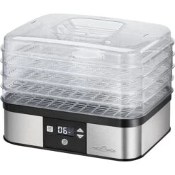 Der Dörrautomat PC-DR 1116 von ProfiCook eignet sich zum Trocknen und Haltbarmachen von Obst, Gemüse, Kräuter, Fleisch und mehr. Die Bedienung ist einfach und durch das Display übersichtlich. Die gewünschte Temperatur kann in 5°C-Schritten von 40°C bis 70°C reguliert und der Timer kann von einer Stunde bis zu 48 Stunden eingestellt werden. Der PC-DR 1116 verfügt über vier Roste. Art.-Nr.: 1459752