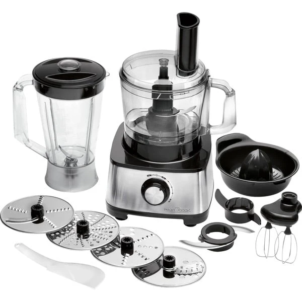 | Zubehör | vorhanden | Zitruspresseneinsatz, Raspel- und Schneidscheibe (fein & grob), Kartoffelreibscheibe, Pommesfritesscheibe/Juliennescheibe, Schlagmesser, Spezial Knet-/Rührwerkzeug, Metall-Schneebesen, Teigschaber | |