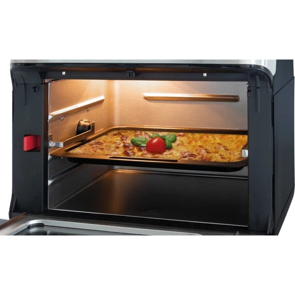 | Zubehör | vorhanden | Frittierkorb mit Deckel, Entnahmewerkzeug, 2x Fixierklammern, Drehspieß, 2x Befestigungsscheiben für Spieße, 8x Spieße, Backblech/Fettauffangschale, 2x Einschubgitter | |