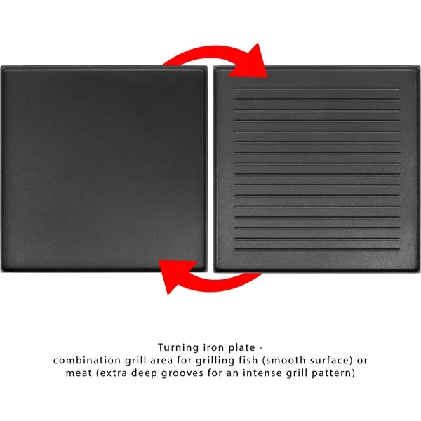 | Weitere Informationen | Gesamte Grillfläche: ca. 48,5 x 24 cm (2x ca. 24 x 24 cm). | ||