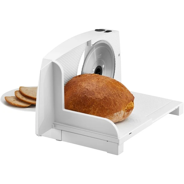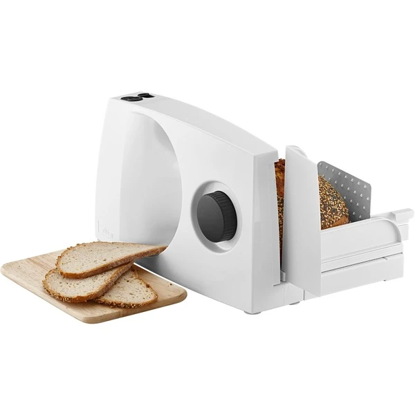Der klappbare Allesschneider markant 05 von ritter bietet einfache, sichere Bedienung und zuverlässige Funktion. Die Schnittstärke lässt sich stufenlos bis ca. 14mm einstellen. Es stehen zwei Betriebsarten zur Auswahl. Für den Kurzbetrieb wird der Schalter gedrückt und bis zum Widerstand vorgeschoben. Das Rundmesser läuft, solange der Schalter in dieser Position gedrückt bleibt. Für den Dauerbetrieb wird der Schalter gedrückt und über den Widerstand hinaus geschoben, bis er einrastet. Das Rundmesser läuft in dieser Betriebsart, ohne dass der Schalter gedrückt bleiben muss, bis der Schalter zurück in die Position „0“ geschoben wird. Mit der Varioelektronik kann die Messerdrehzahl dem jeweiligen Schneidgut angepasst und damit ein optimales Schneidergebnis erzielt werden. Eine langsame Drehzahl ist für weiches Schneidgut und eine schnelle für hartes Schneidgut einstellbar. Angetrieben wird der markant 05 durch einen 65 Watt Eco-Motor, der im Vergleich zum Vorgängermodell 20% sparsamer und trotzdem 50% kraftvoller ist. Aufgeklappt steht er rutschfest auf der Arbeitsplatte. Durch den teilbaren Schlitten bleibt der Allesschneider aus pflegeleichtem Kunststoff auch zusammengeklappt immer komplett. Zusammengeklappt ist er nur noch 10,5cm breit. So lässt sich der Allessschneider so gut wie in jeder Nische verstauen.Art.-Nr.: 1086160